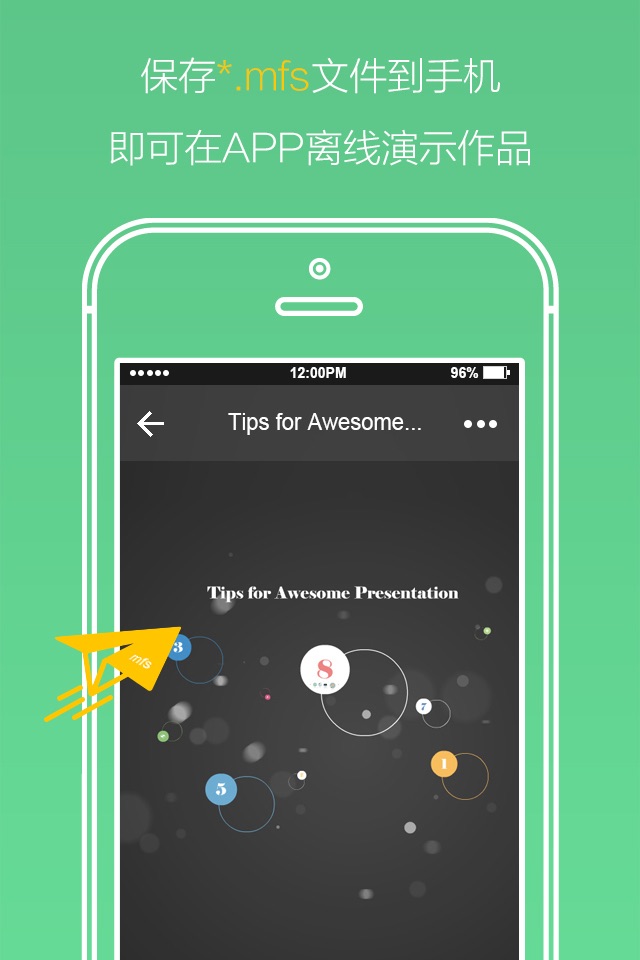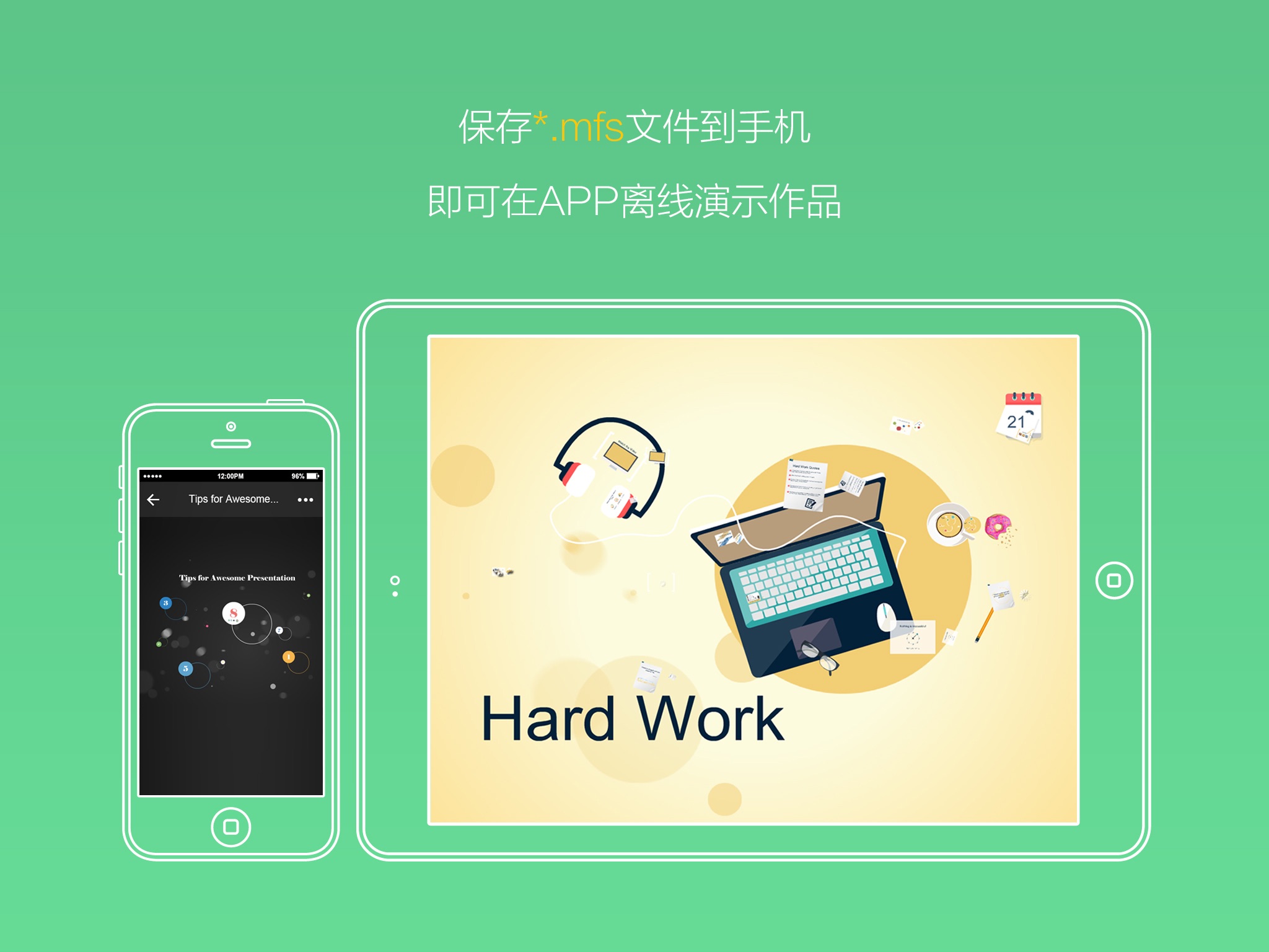 保存*.mfs文件到手机,即可在APP里离线演示作品。