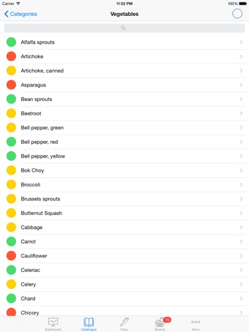 Foods are easy too look up by category. You can rate them according to your experience but then app does not save even if you click on save box. Annoying since my experiences were sometimes different than recommended.