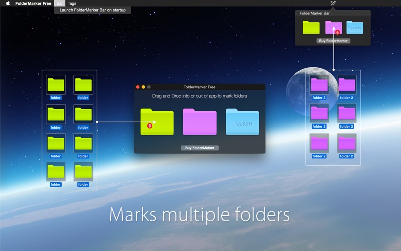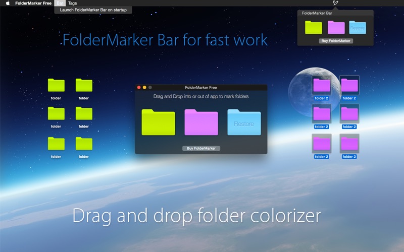 Now you can launch new FolderMarker Bar to colorize folders as fast as possible by dragging to status bar icon.
