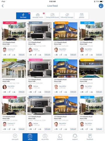 If you’re interested in following the real estate market, just tap your following manager and you can follow whatever you like. You might want to follow your entire region to gauge the market or you might want to follow 3-bedroom houses with ocean views to compare your property with the rest of the market. No matter what you want to follow, your following manager will handle it for you so you never have to ask the same question twice. Just follow it and you can sit back and enjoy a live feed of everything that matches your following criteria.