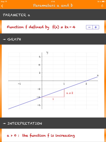 The first part - I UNDERSTAND! - shows dynamically the notions of gradient, Y axis intercept and monotony.