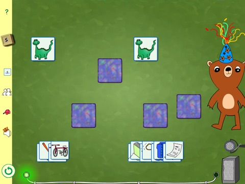 If you have played the game memory you can play Fonemo. Pair cards with images that are alike. In Fonemo all the images contain words with the current speech sound. Whenever you wonder how a word is pronounced the teddy bear can help you. Poke the teddy in the belly and teddy will tell you what’s on the card. Then you can press the microphone that you will find on the game board, repeat the word and listen to it. The recorded sound will play automatically, but you can also press the speaker if you want to listen to it again.