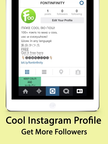 Font Infinity allows you to express your individuality by creating wacky, cool, and fun online messages and profiles. Instantly transform your Facebook, Twitter, and Instagram presence. Expect more Likes, retweets, and followers. Get ready for your social network popularity to skyrocket!