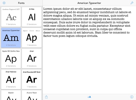 When you found the right font, sharing the name or detail information is made simple with just one click. You can share these information via mail, Messages, twitter or facebook.