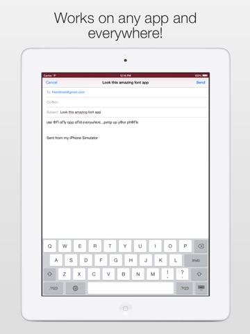 Over 40 different fonts that can be used anywhere and everywhere..works on any app like Mail, iMessage, Facebook, Twitter, Viber, Whatsapp, Line, Kik… surprise and impress your friends!)