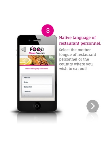 There are millions of people worldwide who are suffering from food allergies. And recent research shows that unfortunatelly this number is rapidly rising. The best treatment of food allergy symptoms is strict avoidance. Therefore not only satisfying daily dietary needs can cause a problem, but during a trip abroad it is also very important to ensure that your meal will not trigger allergic reactions. The risk of a food allergy attack is even higher when the local languages and food sources are unknown and discussions with restaurant staff are complicated.The Food Allergy Translate application supports you to avoid allergic reactions and thus you can eat freely everywhere! The application includes the nine most common types of food allergies and its warning messages can be translated into 33 languages. Now you able to communicate better with the restaurant personnel, because for everyone - facing the challenges of food allergies – avoidance is top priority.