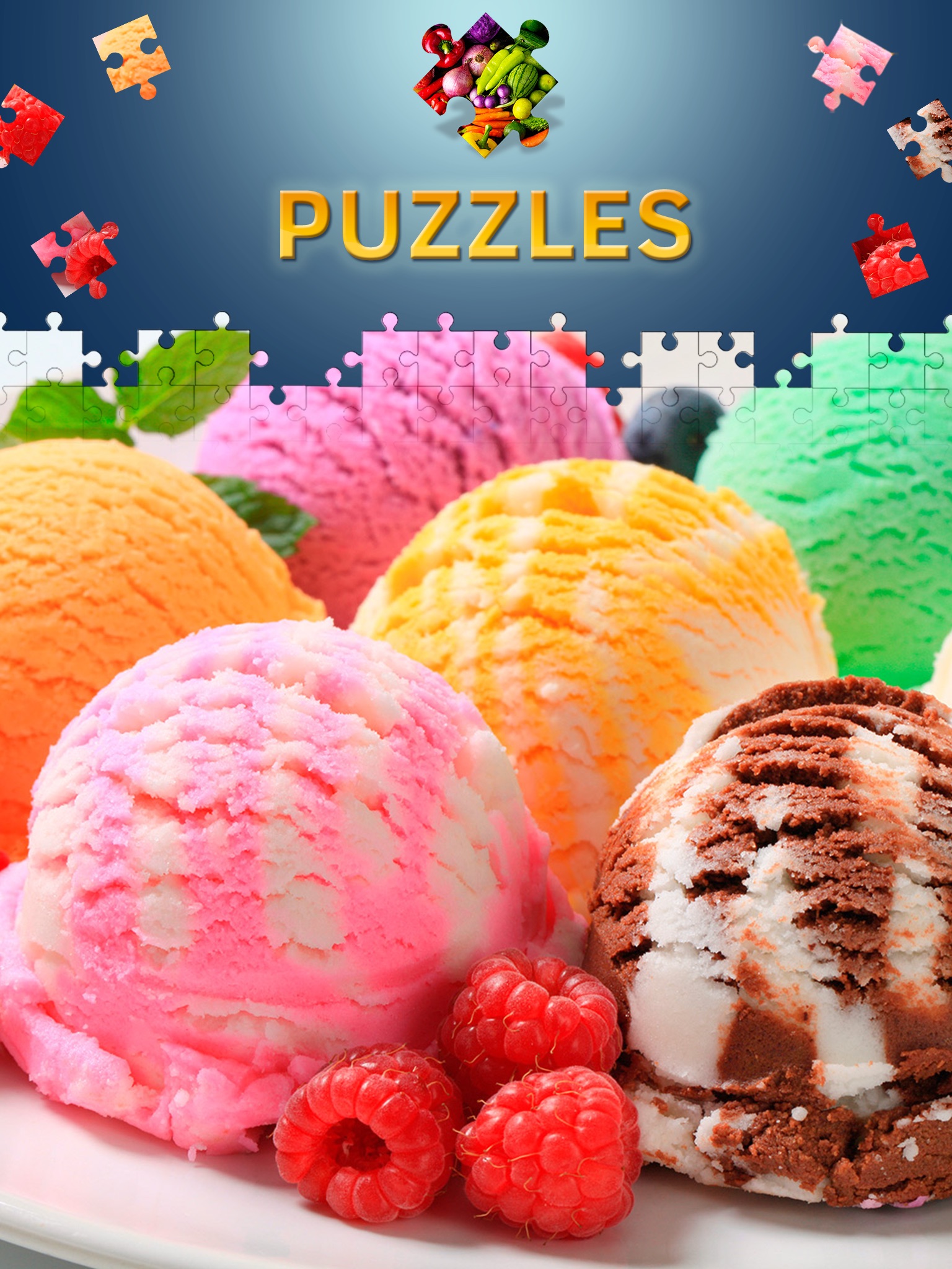 - Collect ice cream jigsaw puzzle of different sizes: 6, 24, 54, 96, 150 pieces;