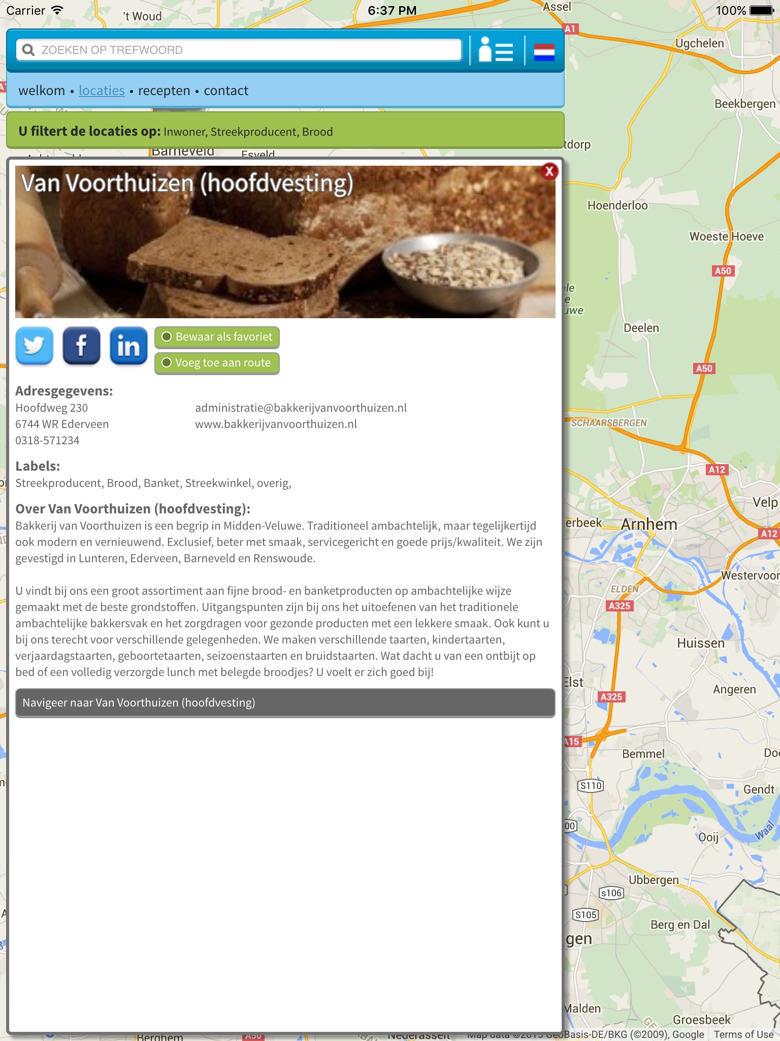 De FoodValley FoodMap brengt de producenten van regionale producten en andere voedingsgerelateerde bedrijven in de FoodValley in kaart. De kaart maakt het gebruiken van lokale producten gemakkelijk en laat zien wat er allemaal te beleven is in de FoodValley regio. De app bezit een receptendatabase en met behulp van de ingebouwde routeplanner creëer je snel je eigen wandel-, fiets of autoroute langs je favoriete ondernemers.