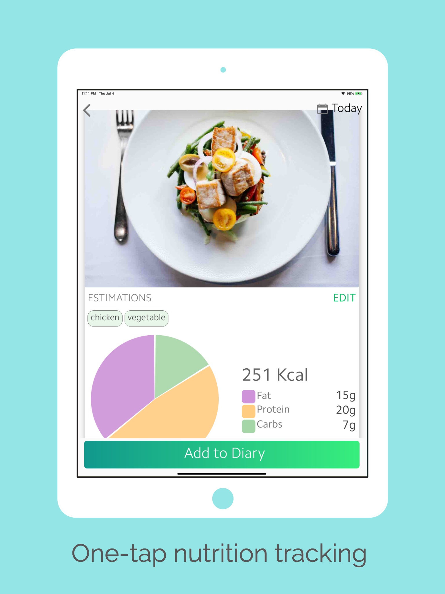 See nutrients, calories, vitamins and minerals by just taking pictures of your meals.