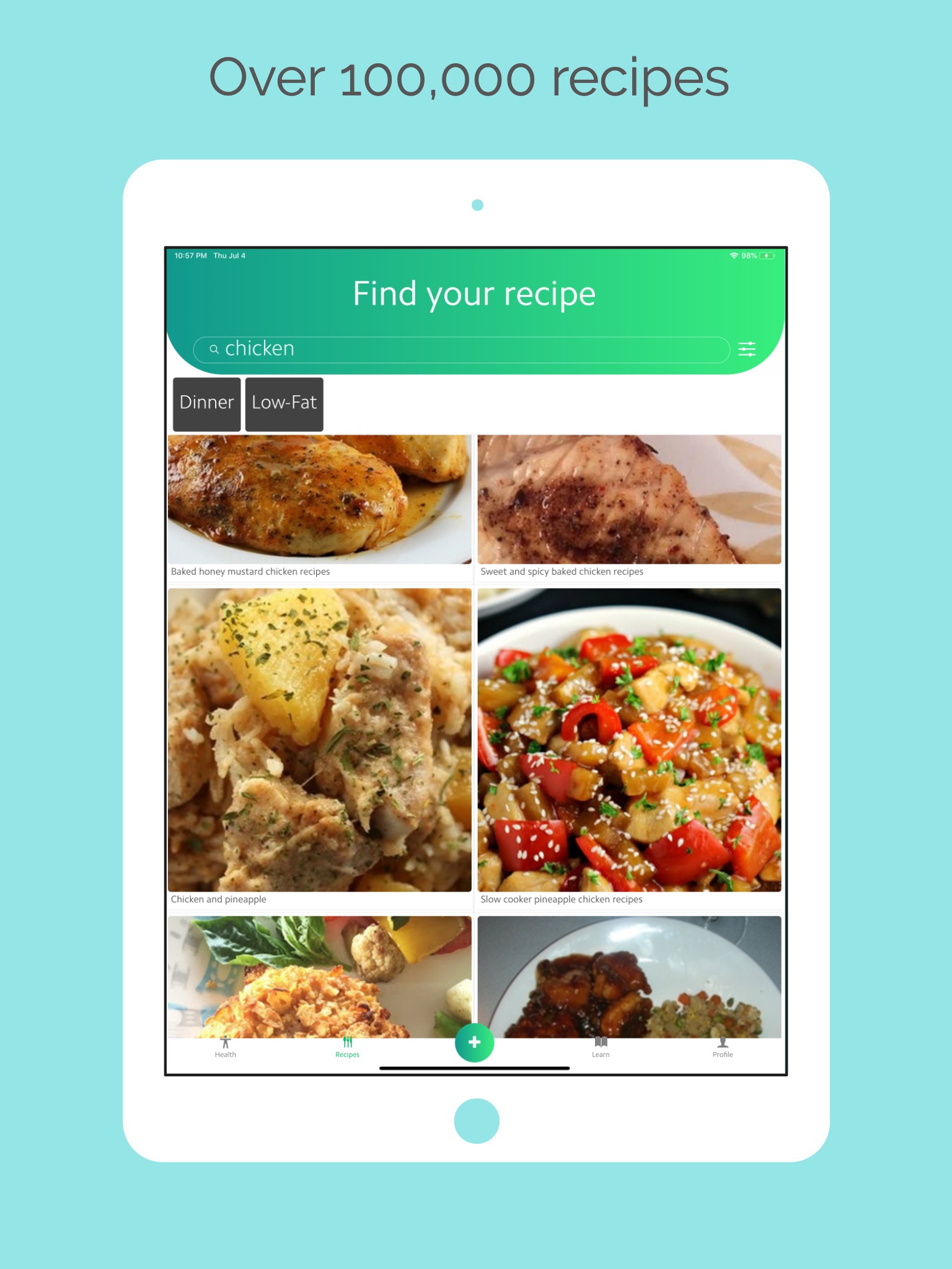 Discover healthy recipes that fit your diet such as "Low Carb", "High Protein", "High Fat", "Low Fodmap", "Diary-free", "No Meat", "Vegan", "Keto-Friendly".
