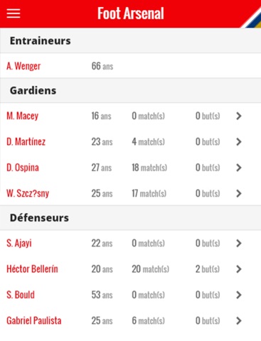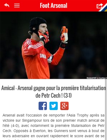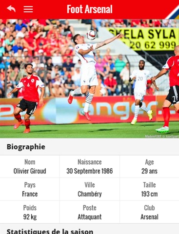 Vous pouvez également y retrouver tous les résultats des Gunners, les photos de leurs matches et les statistiques de leurs joueurs, de Mesut Özil à Alexis Sanchez, en passant par Olivier Giroud ou encore le petit nouveau, Petr Cech !