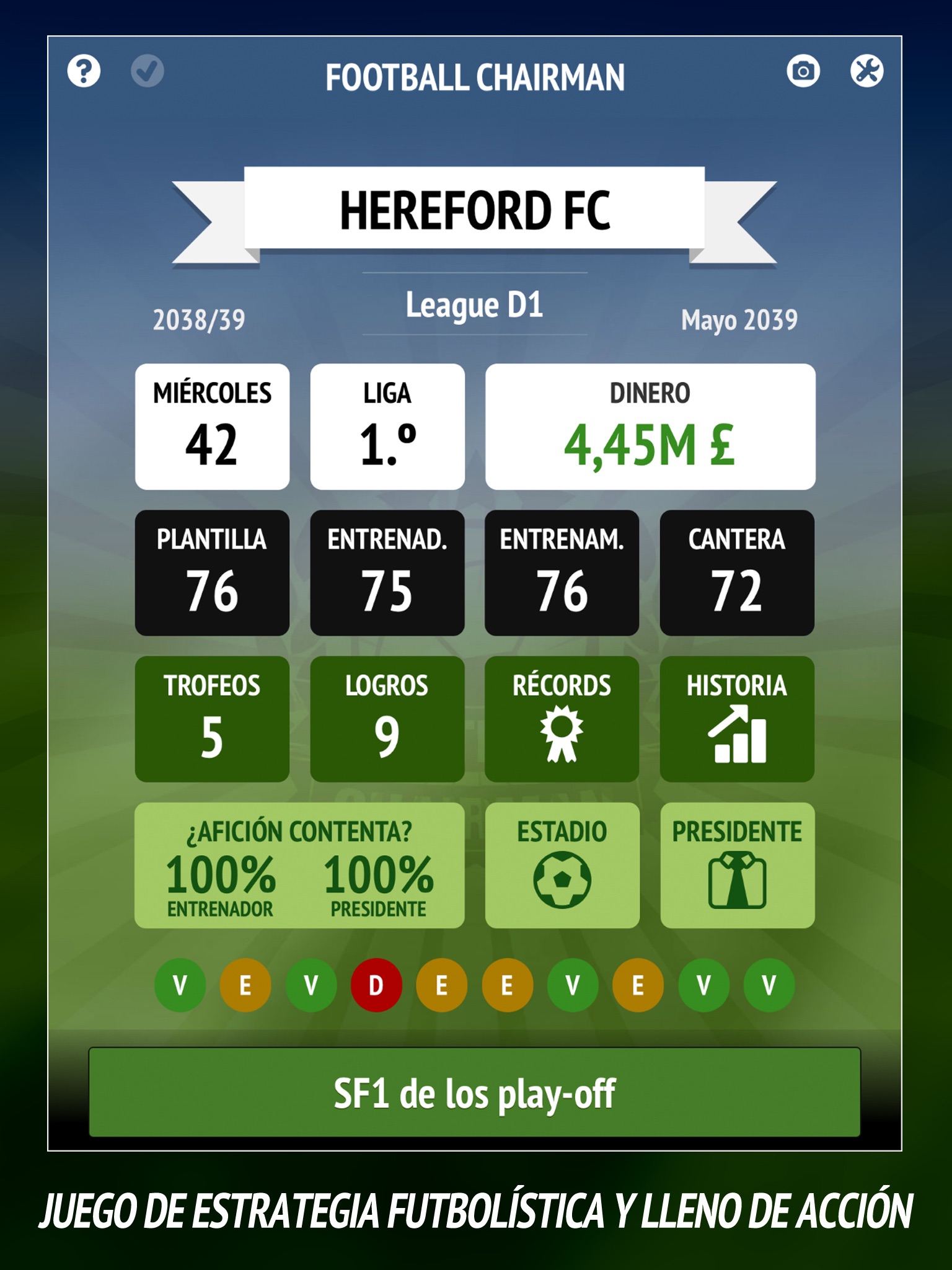 This free version is a full, completely playable game with a few of the non-essential "Pro" features disabled. Your chairman career lasts 30 seasons before you have to retire - can you make it to the top before that happens?