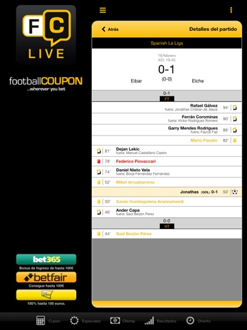 Resultados en directo, substituciones y tarjetas amarillas y rojas desde OPTA.