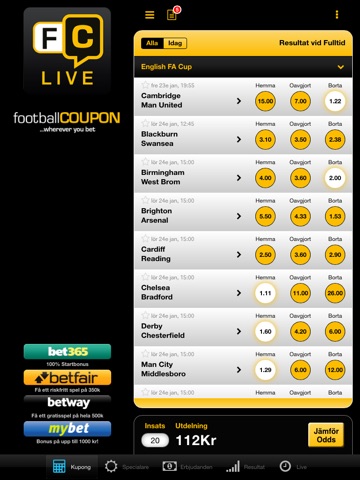 Football Coupon jämför direkt oddsen från 10+ ledande UK spelbolag.
