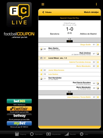 Live Fotboll data från 40+ Europeiska ligor. Information i realtid om mål, byten, Röda och Gula kort samt Kick off och fulltidsresultat.