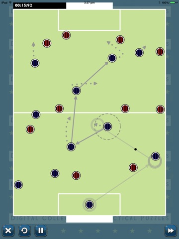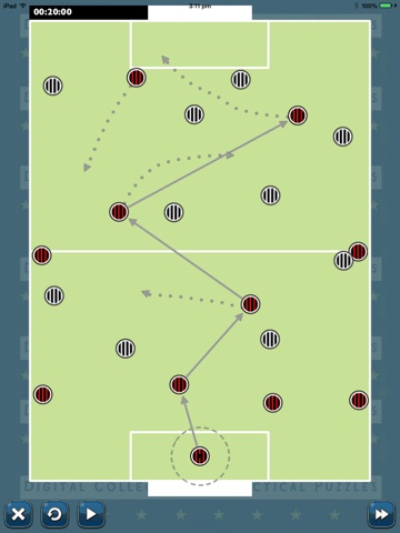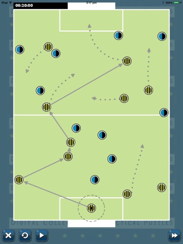 The Football Playbook is a collection of tactical puzzles. In each puzzle you are presented with a snapshot of a football match. To successfully complete the puzzle you must score a goal. Use a combination of timing, movement and key passes to get your players into a scoring position.