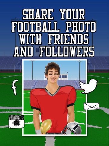 This app allows you to easily save your photo or share it with friends! Use the quick share buttons to post your football pic on Facebook, Instagram, or Twitter.