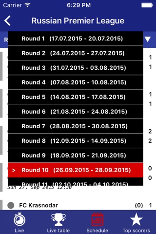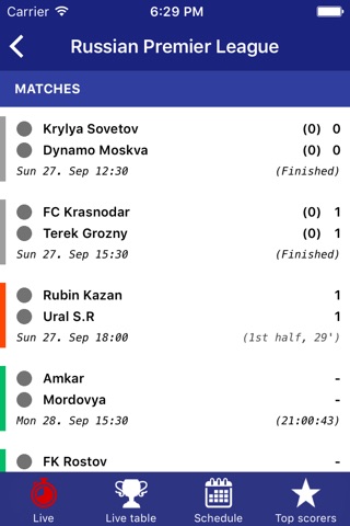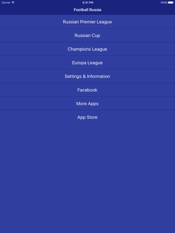 In the app you will find: Russian Premier League, Russian Cup, Champions League, and Europa League...