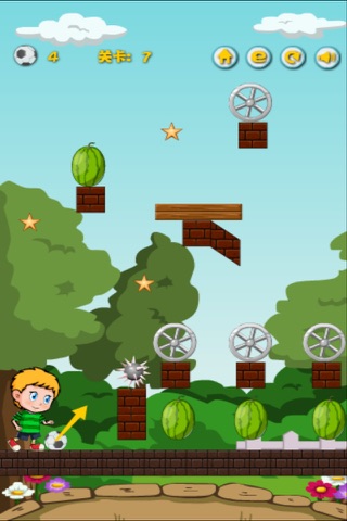 In order to inprove the national quality, people is keen on playing football. So do the children. The lovely boy is practicing playing football. Lets help him to become a star. This is an interesting Physics game. You can use the reflection principle , kick the ball and hit the watermelon. Have fun!