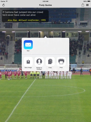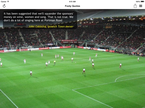 If you want to know who said these gems, you need the Footy Quotes app. The beautiful game has brought us hundreds of memorable quotes and famous one liners over the years, from footballers, commentators and fans alike. We have hundreds of the best British football quotes from Bill Shankley to Jose Mourinho, from players like Eric Cantona and Thierry Henry, plus many commentators and pundits. If you love the beautiful game, youll love these quotes. So, when youre on your way to the match and want to impress your friends, or if you want a profound statement after the game, pull out our football quotes app and see what weve got!