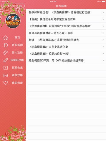 上海欢乐互娱制作的《热血街霸3D》的故事发生在学校,看似和普通学校没差,实则却是卧虎藏龙。在这里,一切靠实力说话,没有实力就可能在入学第一天被K得落花流水。主角必须是开挂模式,打不死的小强,不断升级补充体力就能满血复活。热血少年一路碾压不服,最后登顶校园,成为传说中的“那个男人”。本攻略通过官方新闻来了解每一个活动,有新人攻略、BOSS攻略、英雄分不同时期来提升技巧与介绍游戏,还有各种视频来满足玩家的观感。