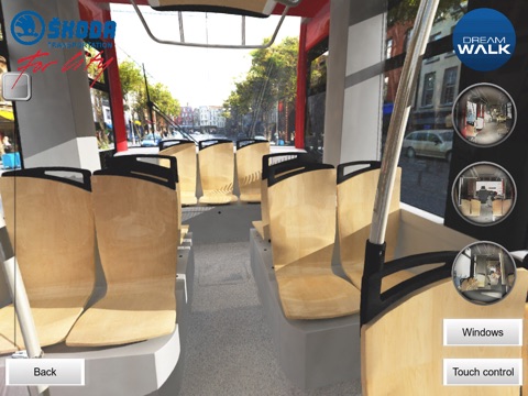 Nasedněte do virtuální tramvaje 15T ForCity. Projděte si její vzdušný interiér, který spojuje eleganci, dynamiku a nejmodernější technologie. Tramvaj ForCity, kterou vyrábí společnost Škoda Transportation, si můžete prohlížet v prostorovém úhlu 360° tak, jako byste stáli přímo uvnitř a rozhlíželi se kolem sebe. Díky revolučnímu interaktivnímu režimu 3D Dreamview můžete navíc zapnout kameru a za okny se vám bude promítat reálné pozadí, například pražských ulic, kterými tramvaje ForCity projíždějí.