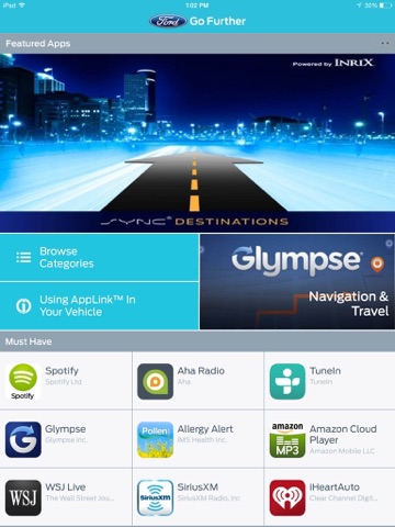 Browse the Ford App Catalog categories to find which of your favorite apps are already AppLink-enabled for use in your Ford vehicle or discover new and exciting apps. No more searching through thousands of titles to find which apps are compatible with Ford SYNC using AppLink. This intuitive experience removes the clutter around app discovery by only displaying AppLink approved mobile apps. AppLink allows Ford owners to perform many customary app actions such as “Thumbs Up/Thumbs Down”, “Play Favorites”, and many more simply by using SYNC voice command. Steering wheel, radio and vehicle display buttons let you keep your phone in your pocket and your hands on the wheel, while enjoying all of the most popular iPhone apps!