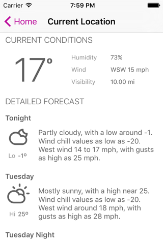 Forecaster uses the National Weather Service to present you with detailed forecasts on your iOS devices. You can easily add remote areas and waterways to get forecasts pertinent to the exact location. NOAA forecasts predict things like wave height and snowfall depths and more. It has an easy to use interface and the app is also available for Mac.