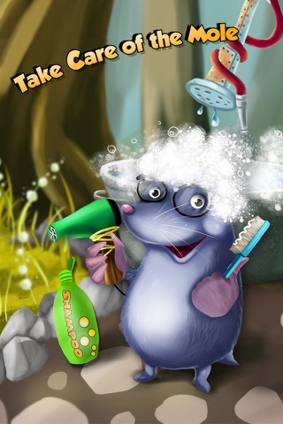 Mr. Mole was digging all day and got dirty. Help him relax after a long day of work: give the little Mole a warm bubble bath, dry and brush his fur, clean his teeth and take care of the nails. Clean up the bathroom when Mole’s bath time is over!