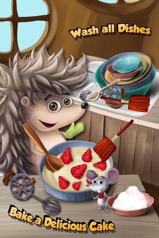 Cute little mouse and hedgehog will show you how to bake a super delicious cake with wild strawberries. Don’t eat too much because you’ll have to clean up too! Wash the dishes and keep the kitchen tidy after cooking!