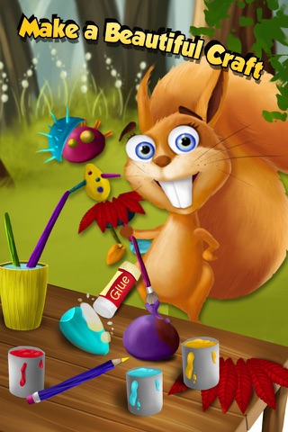 Crafty squirrel is here to teach you forest arts and crafts. Make a toy from things you can find in the forest and don’t forget to clean up your workspace! Clean the table, throw away garbage and put art tools in their places after fun time of creation!