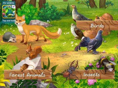 Forest animals - is an interactive encyclopedia that will occupy interest of all the members of your family. Animals, birds and insects of Europe forests will tell you their secrets and share some curious facts about themselves. Colorful graphics and realistic sounds of forest life will attract your child’s attention for a long time and also help your kid to learn forest fauna with pleasure. Beautifully painted pictures will keep toddlers sliding through for quite some time, while their parents are busy with adult things. And it will be time well spent! Older kids and parents alike will enjoy learning many cool scientific facts about the animal world.