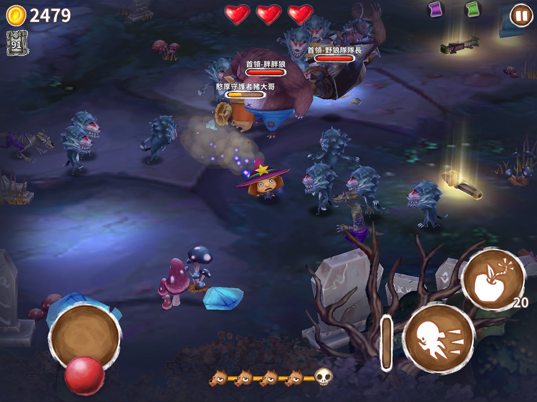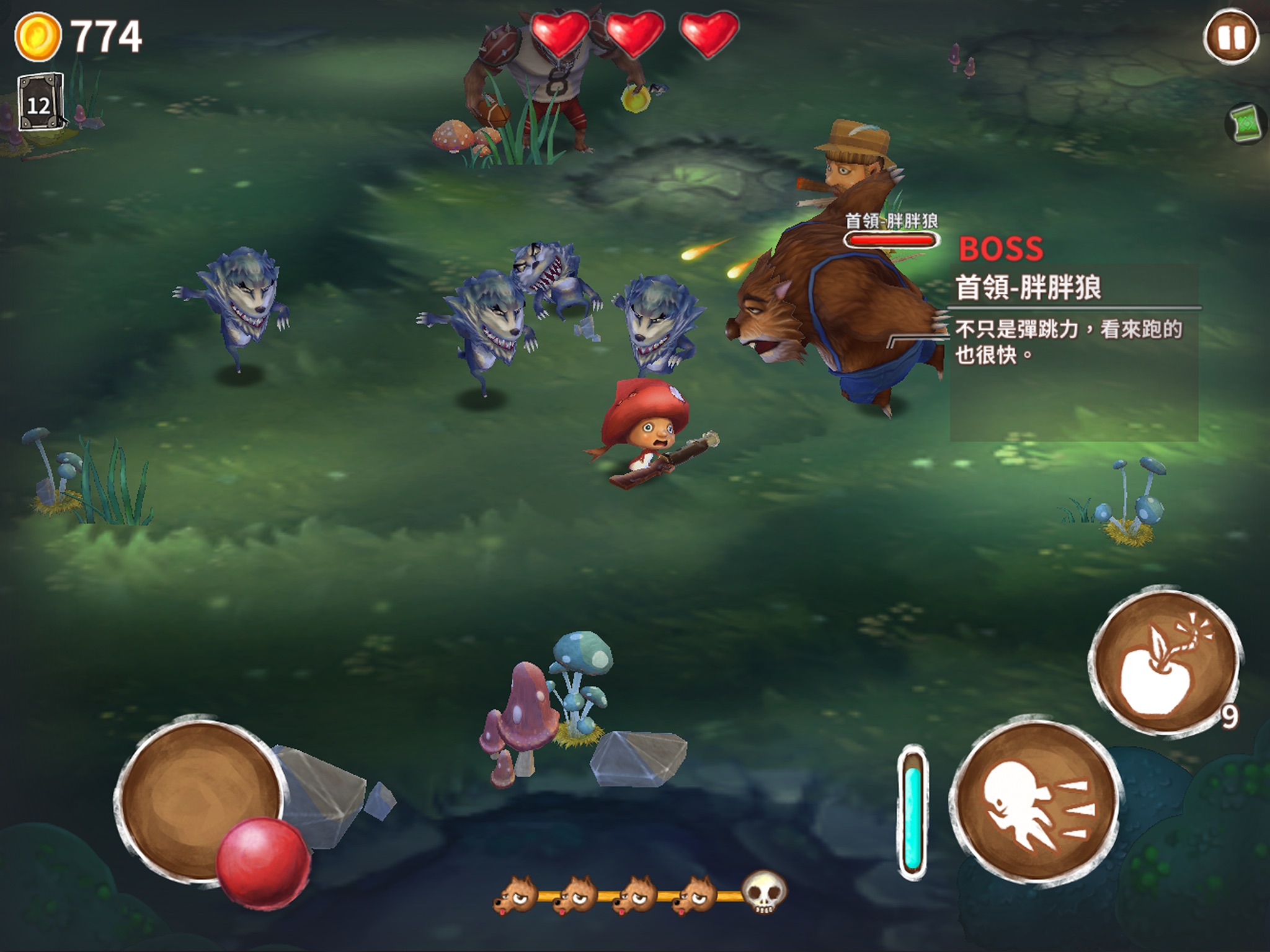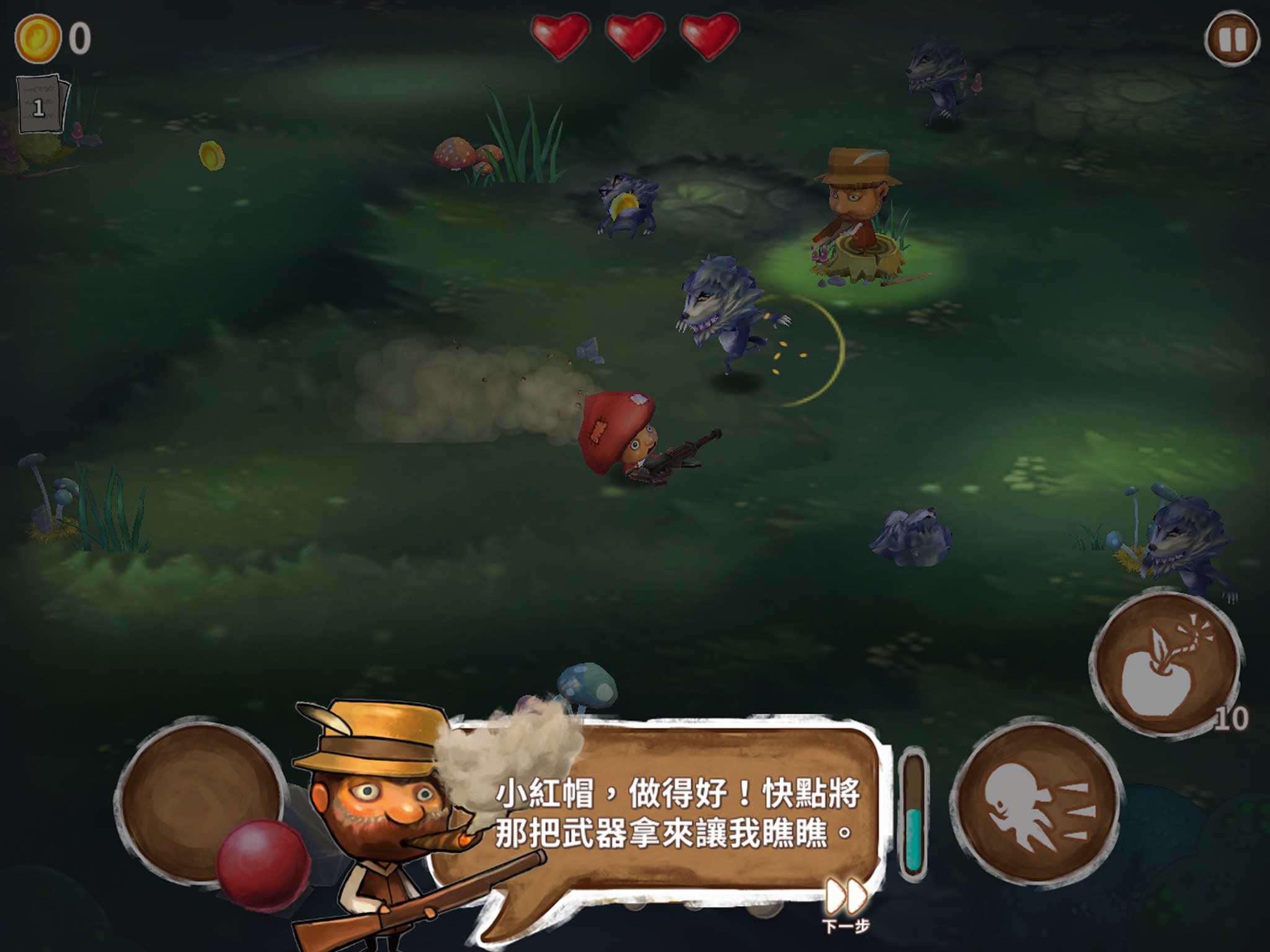 Fairy tale comic art style in a run and dodge survival game! Tons of wolves with a variety of attacks will challenge your reflex and ability to keep Red safe! Clever and smart usage of items along with the help of the hunter and other forest friends will help Red fend off the wolves. Run and keep on running to keep Red safe!