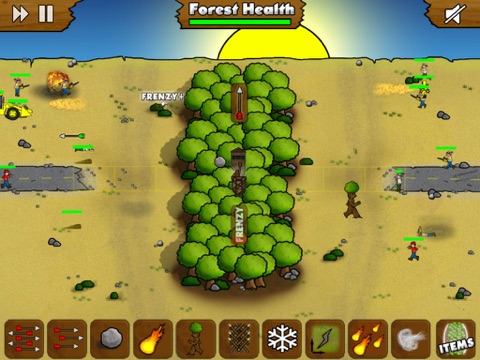 Forests are being destroyed at an alarming rate all over the world, your mission is to stop it from happening! Ranging from arrows all the way up to the ground shaking Armageddon, you can upgrade and use up to 30 different weapons and specials to keep the loggers at bay.