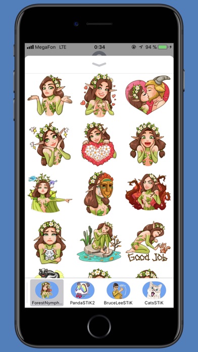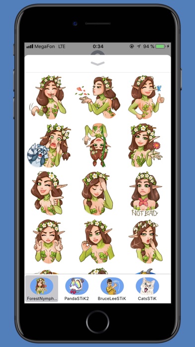 New funny sticker pack with a lovely Nymph! Share emotions with friends and enjoy!
