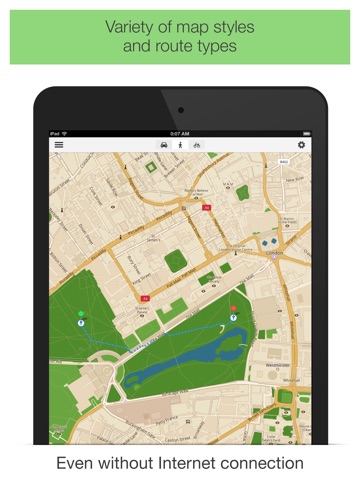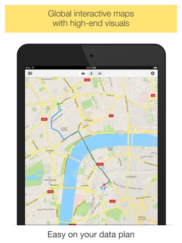 Contient toutes les cartes dEurope, cest pratique pour savoir rapidement où on se trouve. Se géolocalise comme Google plan, cest à dire dabord par triangulation puis par GPS, donc très rapide pour avoir une position approximative et si on est dans un coin qui capte pas bien le réseau, pas de problème, les cartes sont embarquées. Au niveau du rendu, cest un peu moins beau que Google, lépaisseur des rues est trop faible et les couleurs peu contrastées, sur le bord de mer, la frontière entre terre et mer est mal définie. Des petits détails cosmétiques qui jespère seront réglés par une mise à jour. Les POI sont nombreux mêmes sils ne sont pas exhaustifs, des articles Wikipédia intéressants pour les lieux remarquables, le tout en français. Une appli a recommander tout à fait utilisable en français.
