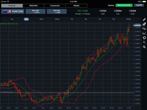 - Access our intuitive candlestick, bar or line charts that have over 35 drawing tools and technical indicators, historical data, time frames from minutes to days, pinch-to-zoom functionality and smooth scrolling for an optimal browsing experience.