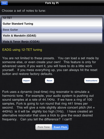 Fork uses a real-time ring resonator (instead of simply playing a sound file) -- sing a note into the iPhone and Fork will resonate sympathetically.