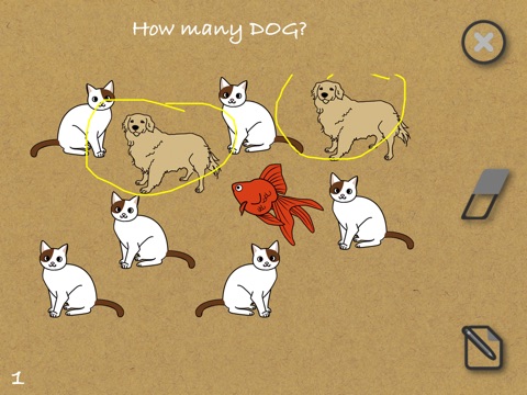 Kids will be happily in learning by counting with friendly things like : Apples, Cats, Dogs..