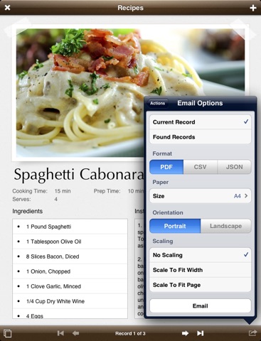 You can create a nice-looking database with this software (through an overly convoluted process where you have to connect to your iPad from another computer), but you cant even create an index page for your database, which means the software is not good for databases with more than 10 items. If you want for example a recipe database where you can browse through the index to figure out what to cook today -> impossible with this software. Also, you cant access your database from the other computer. You can only edit it on the iPad, which is overly complicated. Support requests remain unanswered by the developer (but he has a lot of time to post on Twitter). I guess once you have paid for the software, youre not interesting anymore.