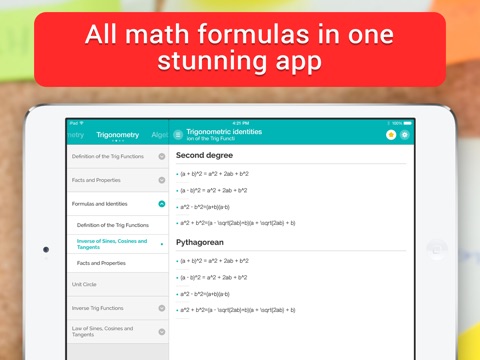 Formulae Helper - math reference app with formulas for calculus, algebra, geometry, trigonometry, precalculus, integrals, limits, derivatives, functions, antiderivatives, series, polynomials, numbers and sequences, equations, vectors, trig at Mac App Store analyse