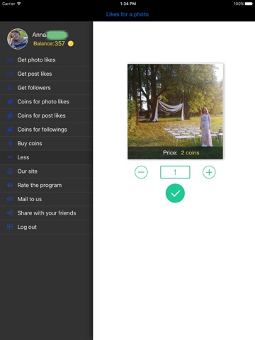 2. If you perform the task, you get coins which you can spend on buying for likes your photos& posts and for follower increasing to your VK account.