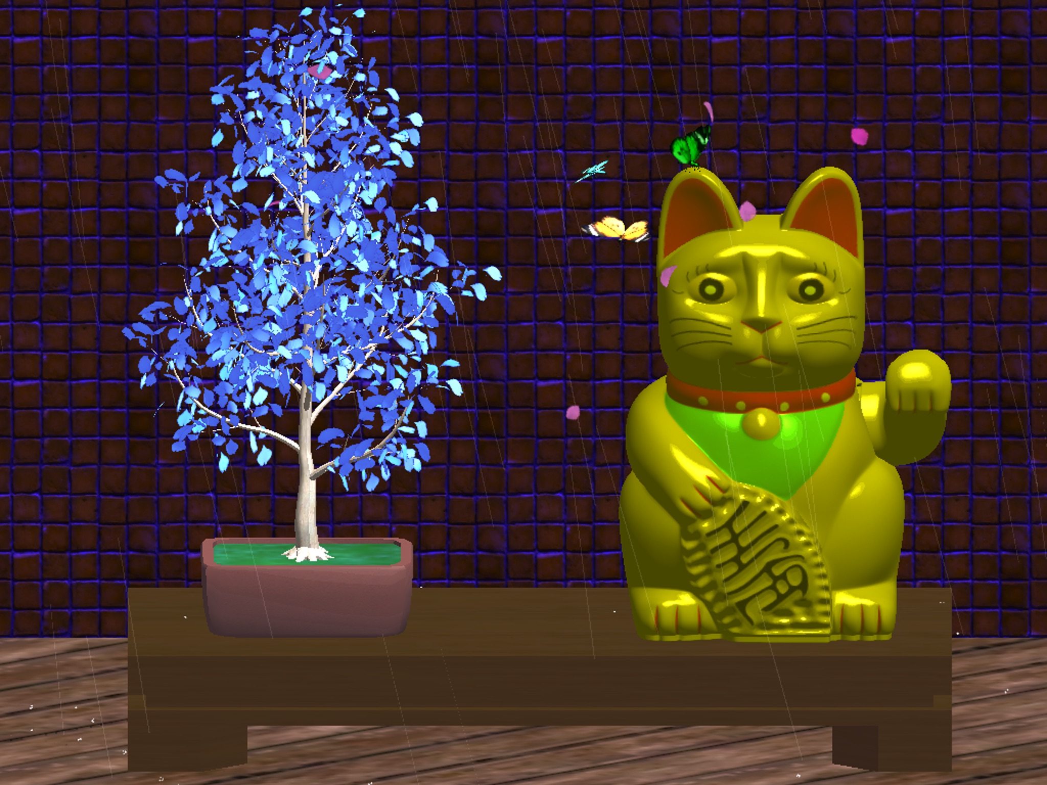 A double click on your cat or accompanying bonsai tree will change their colour.