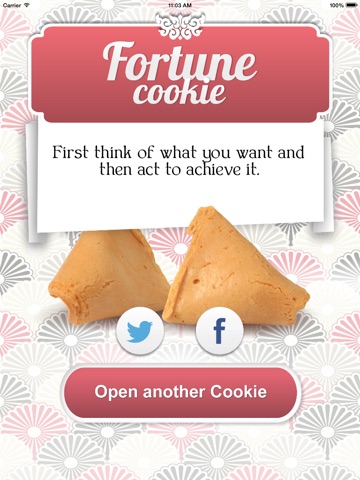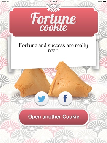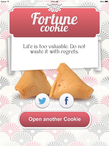 The Fortune Cookie App will accompany you in your day to day so you can enquire after your luck, any time you need so you can take the wiser decision every time. Its ancestral proverbs and its future forecasts will bring you luck, guide you and inspire you. Share in Facebook with your friends!