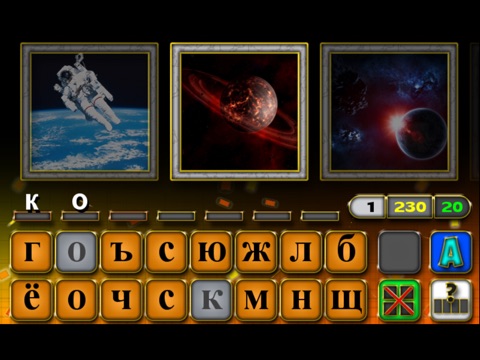 В игре нужно отгадать слово по представленным вам картинкам. В вашем арсенале будут четыре разные подсказки - показать дополнительное фото, открыть первую букву в слове, узнать количество букв и убрать лишние. Две подсказки в начале каждого уровня бесплатны, выбирайте любые, за другие же придется отдать часть заработанных очков. Любое слово можно пропустить и отгадать позже, так же можно попросить помощи у друзей в социальных сетях.