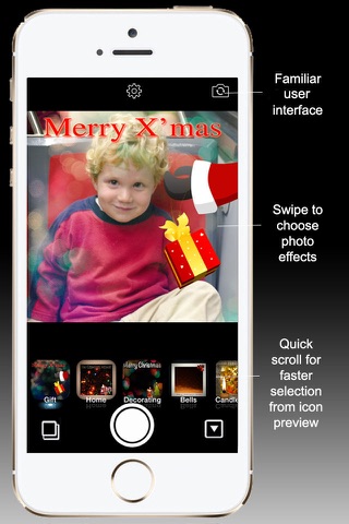Fotocam Christmas transforms your photo to various nice effects by adding christmas ecards to your photo! We have variety of christmas ecards designed together by professional photographers and real artists to provide you the most exciting photo effects.