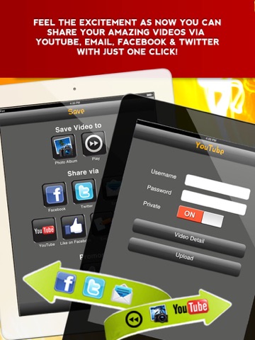 Transform your photos into a beautiful high quality photo slideshow, add background music and then share with your friends and family in just a few seconds. You can now upload your personalized photo slideshows to YouTube, save to your photo album, and or share via Email, Twitter, or Facebook.