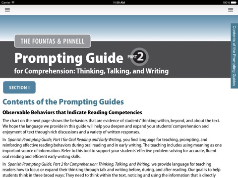 The Fountas & Pinnell Prompting Guide 2, for Comprehension: Thinking, Talking, and Writing contains precise language to use when teaching, prompting for, and reinforcing effective strategic actions in reading and writing. Classroom teachers, reading specialists, literacy teachers, and literacy coaches can use the flip chart app as a ready reference while working with students in several instructional setting and contexts