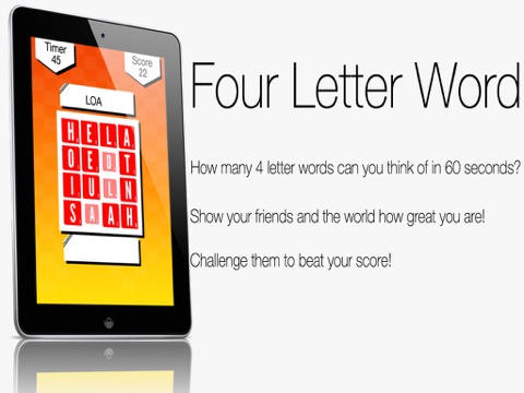 Get ready to start thinking about four letter words! This is the most addictive new word game for your iPhone, iPad and iPod Touch.