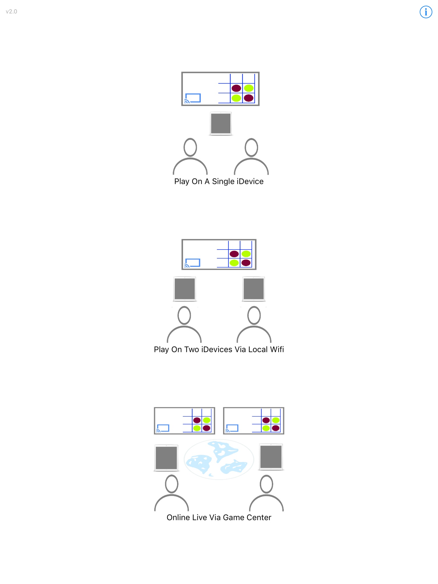 Game mode 1: - Play On A Single iDevice - Two players play using a single iDevice.